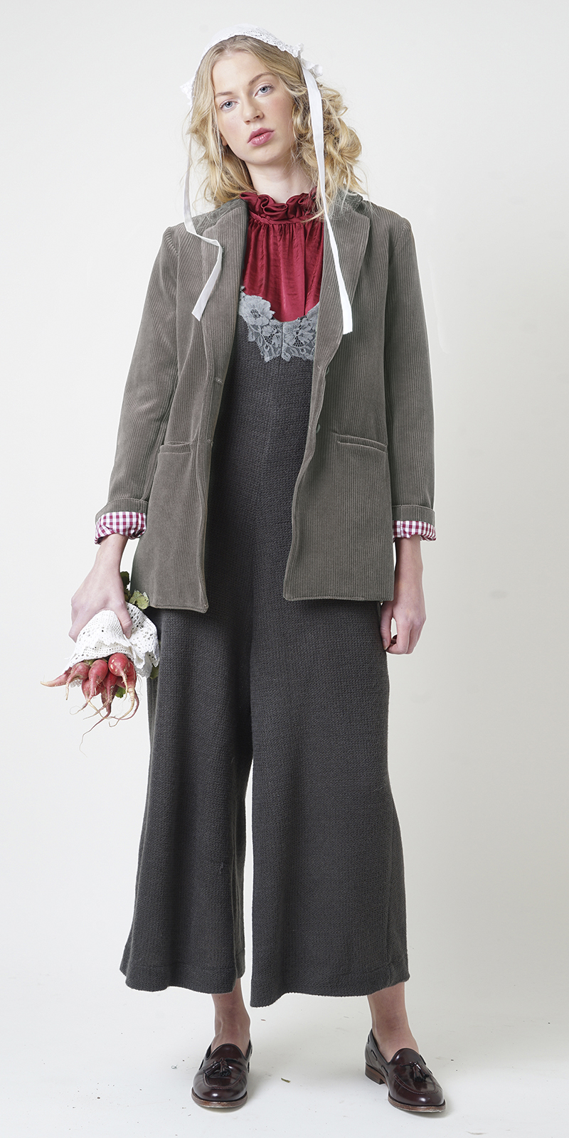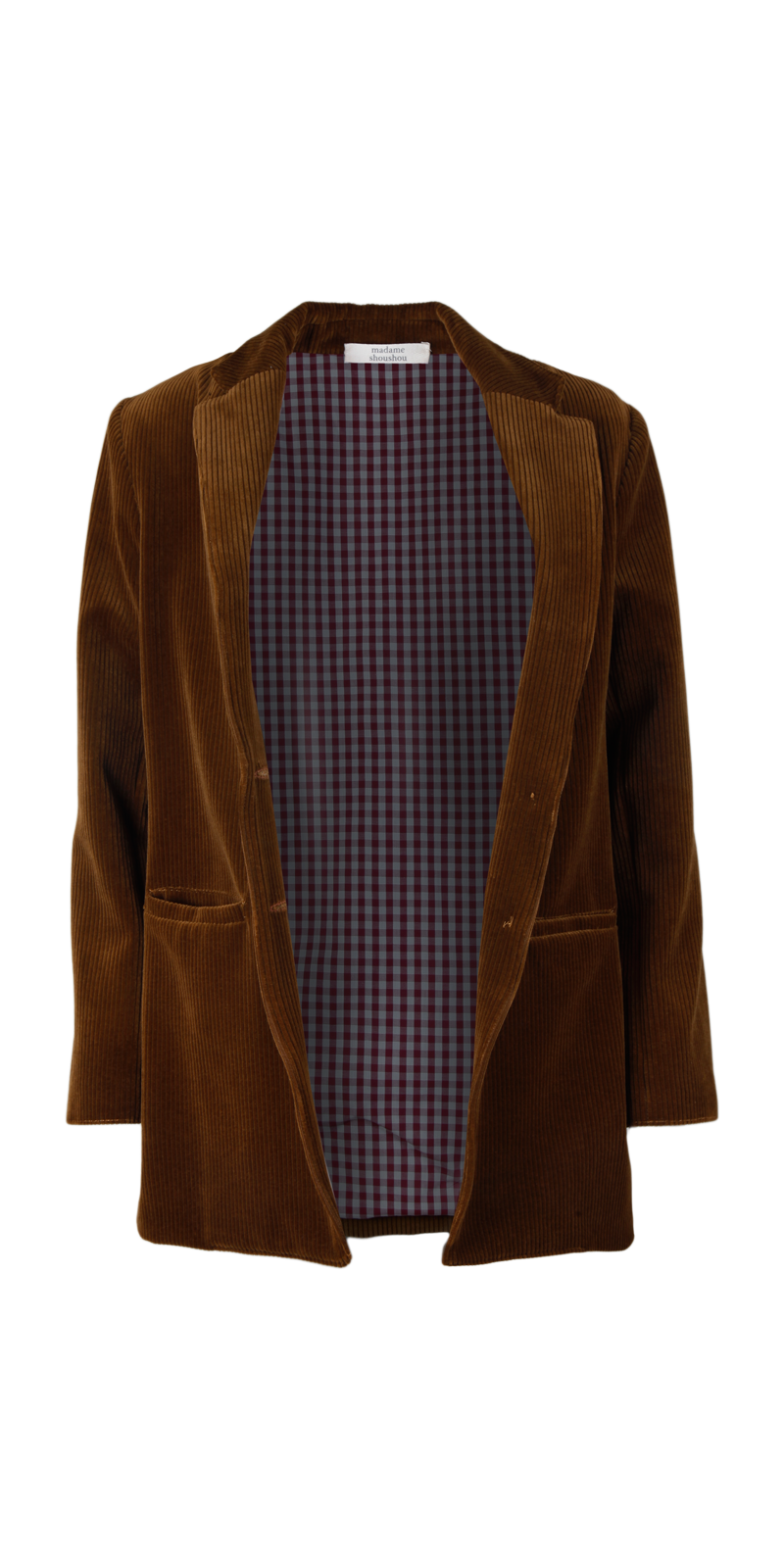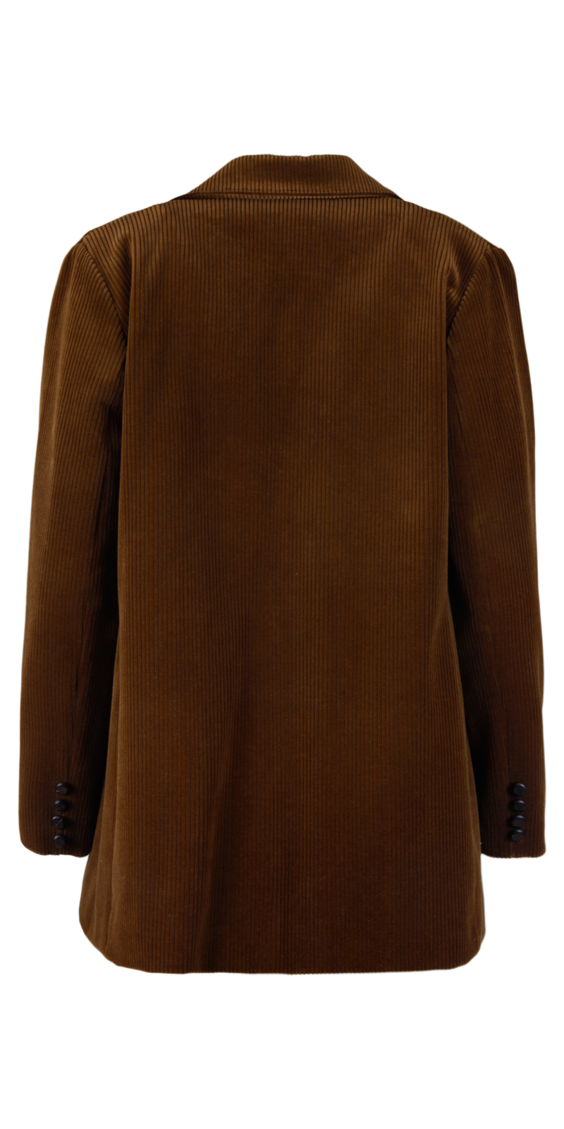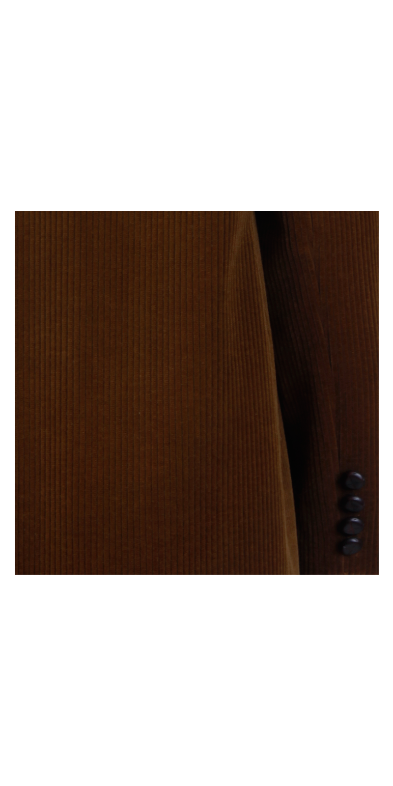 Κοτλέ σακάκι σε δύο φθινοπωρινά χρώματα, σκούρο λαδί και ανοιχτό πράσινο. Παιχνιδιάρικη λεπτομέρεια η ριγέ φόδρα του και τα δερμάτινα κουμπιά.